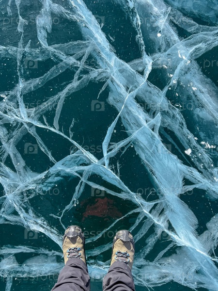 Естественная текстура зимнего льда с белыми пузырьками и трещинами на замерзшем озере. Абстрактный фон льда и трещин на поверхности замерзшего озера Байкал