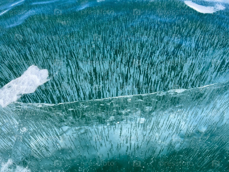 Естественная текстура зимнего льда с белыми пузырьками и трещинами на замерзшем озере. Абстрактный фон льда и трещин на поверхности замерзшего озера Байкал