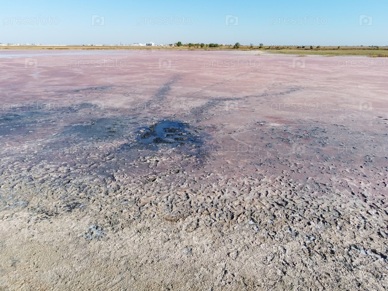 Розовая поверхность соленого озера, высохшее розовое соленое озеро, розовая поверхность