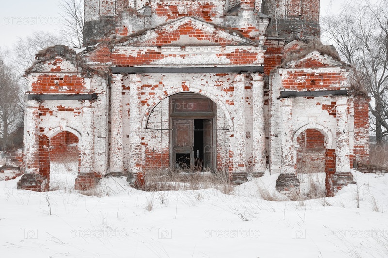 Дверь в заброшенной церкви, вход в заброшенный храм