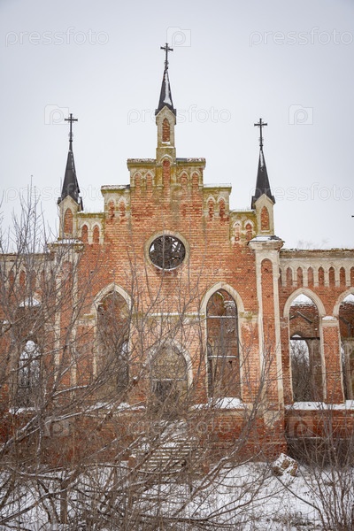 Заброшенная церковь из красного кирпича, заброшенная неоготическая церковь