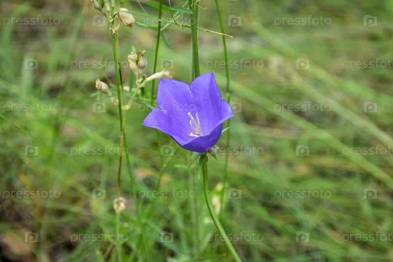 Полевые цветы. Нежный фиолетовый колокольчик на зеленом фоне. фиолетовый полевой цветок, колокольчик