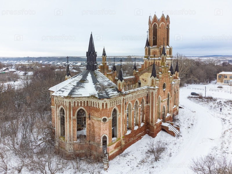 Заброшенная церковь из красного кирпича, заброшенная неоготическая церковь