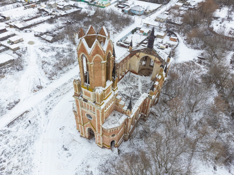 Заброшенная церковь из красного кирпича, заброшенная неоготическая церковь