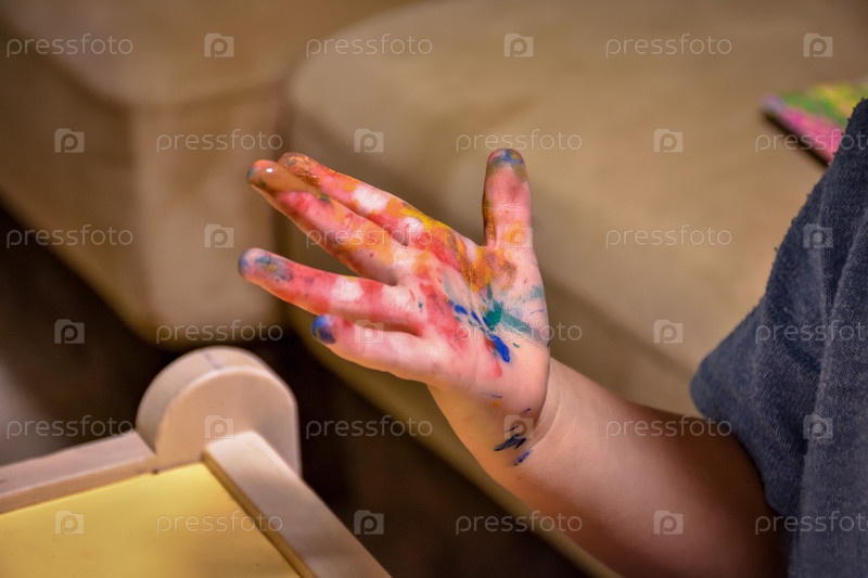 Детская рука измазана красотой