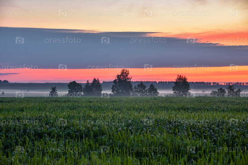 Рассвет туманное утро, утренний туман