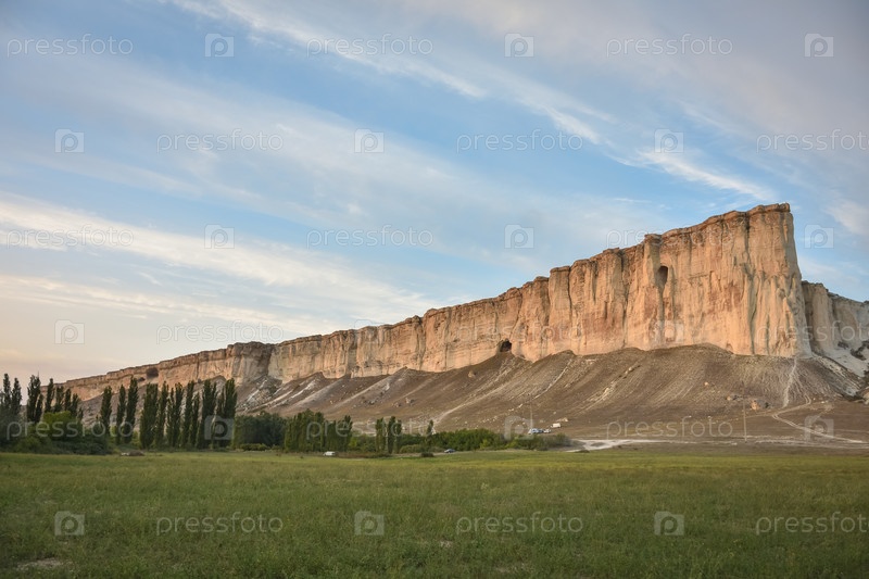 Белая скала летом на фоне неба