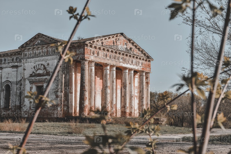 Заброшенная православная церковь, заброшенный храм с колоннами