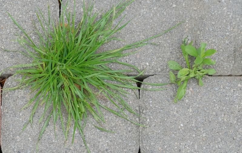 Зеленая трава проросшая среди серой тротуарной плитки