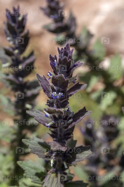 Редкое растение (Ajuga orientalis) растет в горах крупным планом
