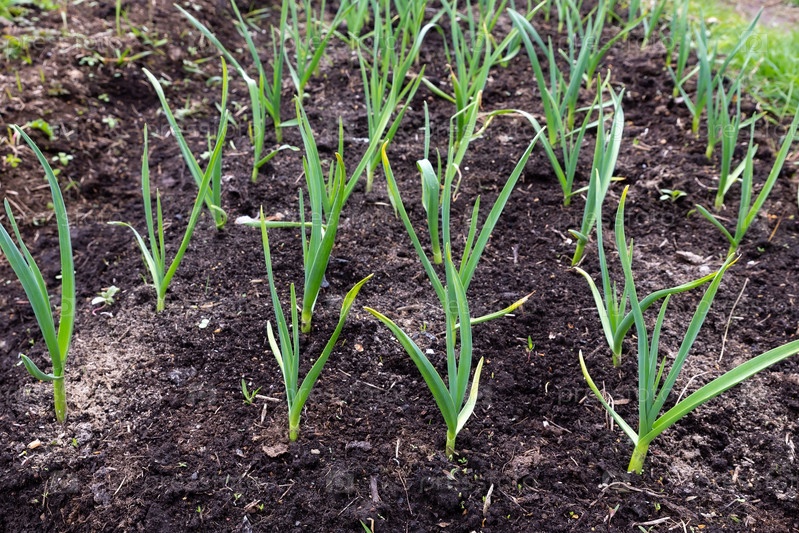 Чеснок в саду. Выращивание чеснока в саду. Овощные грядки с чесноком