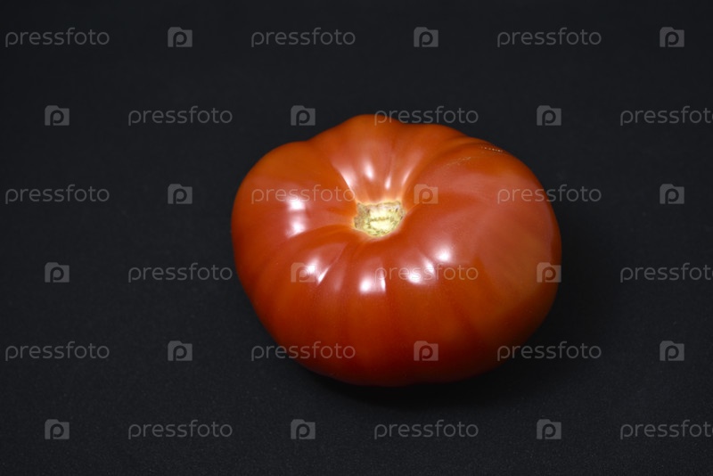 Большой красный помидор на черном фоне. Овощи крупным планом