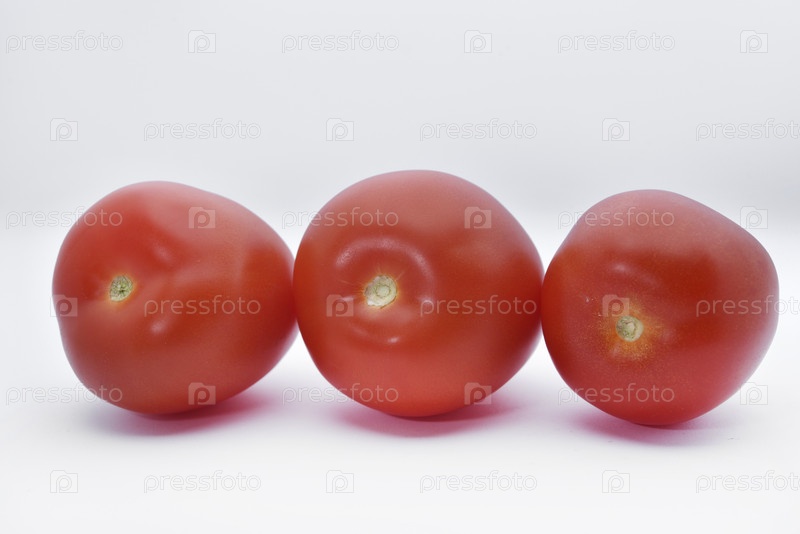 Красный помидор на белом фоне. Овощи крупным планом. Вкусные помидоры