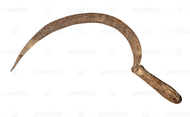 Старый ржавый серп из кованого железа, изолированный на белом