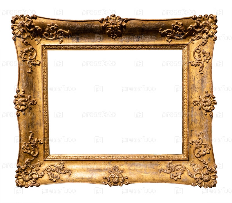 Старая горизонтальная широкая золотая рамка в стиле рококо