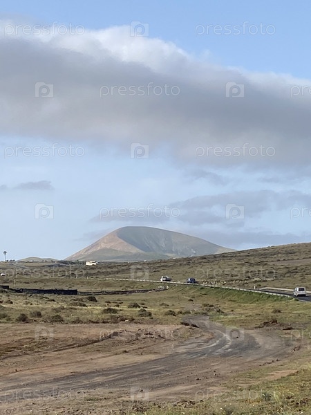 Красивый и типичный ландшафт Лансароте, вокруг вулканов, лавы, океана