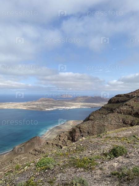 Красивый и типичный ландшафт Лансароте, вокруг вулканов, лавы, океана
