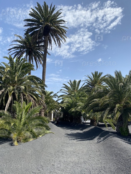 Так растут пальмы среди черного вулканического песка на Лансароте