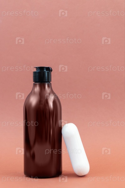 Пластиковая бутылка для средств гигиены или косметики, оранжевый фон