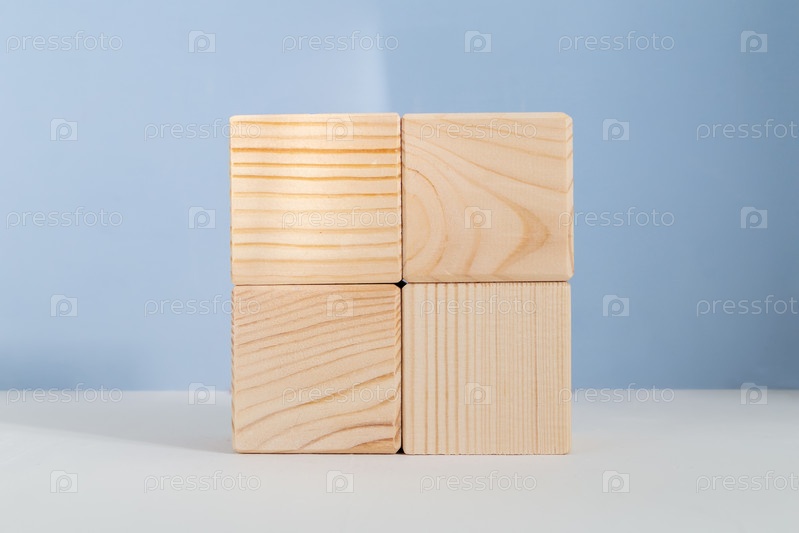 Деревянные кубики на голубом фоне, шаблон витрины