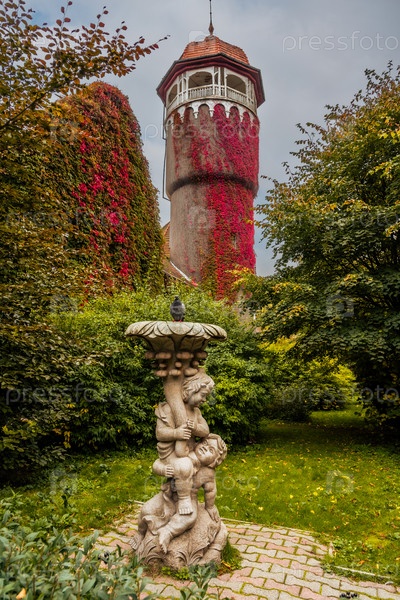 Старая водонапорная башня, один из символов города Светлогорска осенью. Калининградская область. Россия