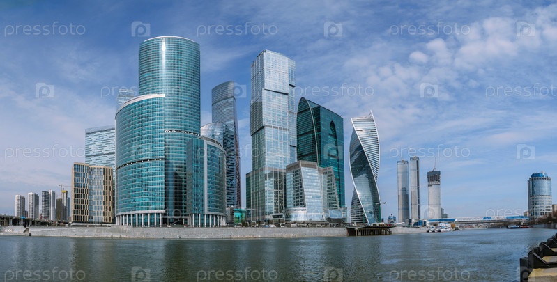 Панорама небоскребов района Москва-Сити в солнечный день. Москва. Россия