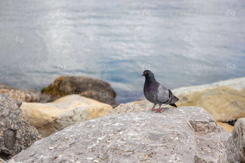 Голубь ранен в одну ногу. Ногая птица-голубь-инвалид. Раненый серый черный голубь с одной лапой гуляет по набережной