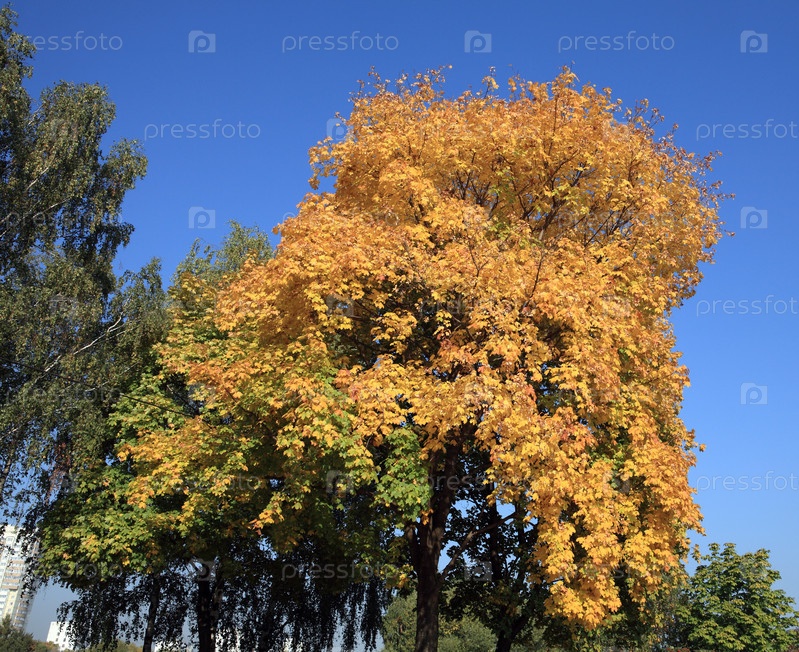 Желтые кленовые листья на дереве
