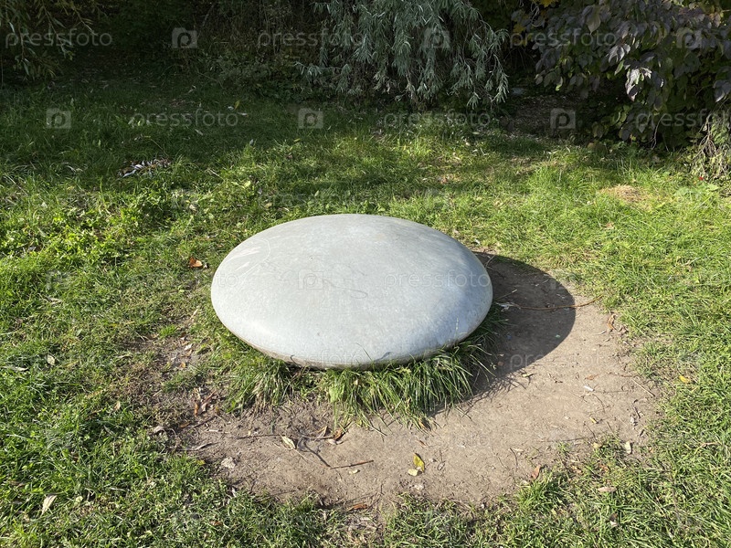 Круглый камень в парке в сухой солнечный осенний день