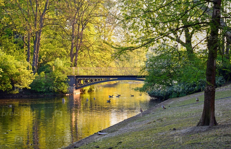 Мост через пруд в городском парке