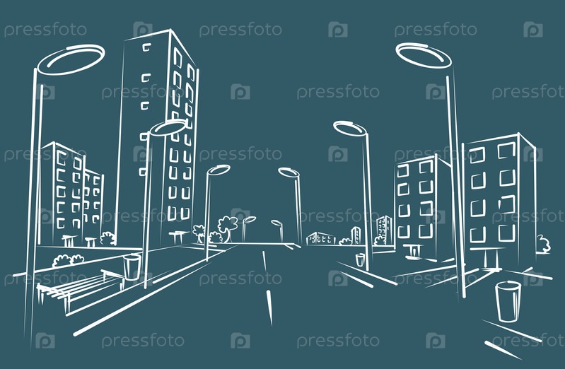 Набросок городской улицы с домами