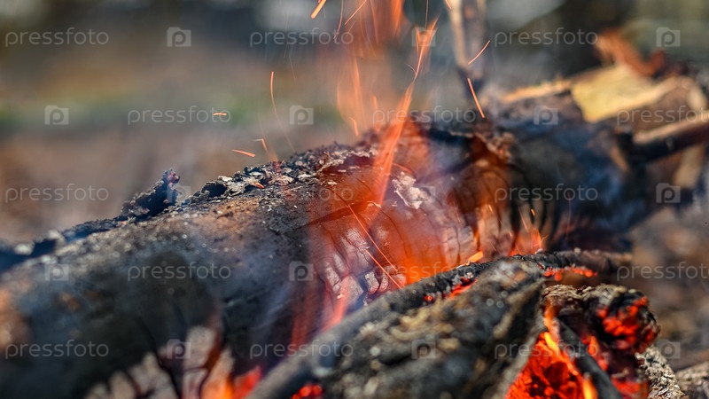 Деревянное бревно, обгоревшее в пламени огня