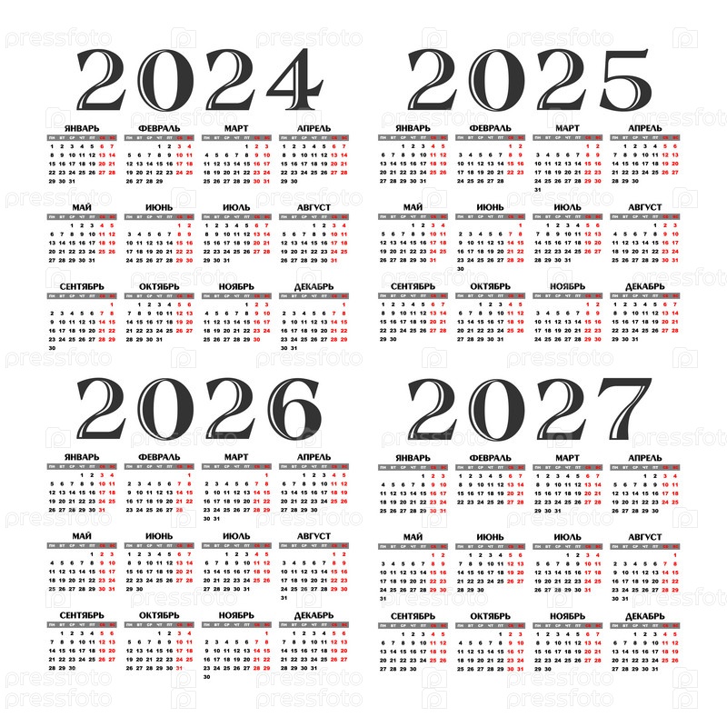 Набор шаблонов календаря на 2024-2027 годы