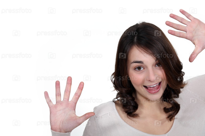 Девочка смеется и поднимает руки