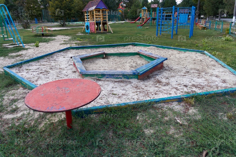Сломанная песочница на заброшенной детской площадке
