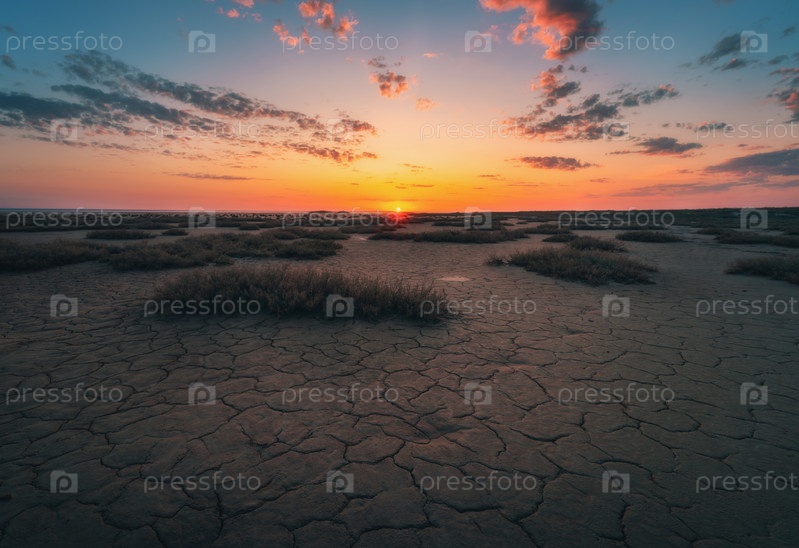 Фантастический закат в солончаках у соленого озера Эльтон