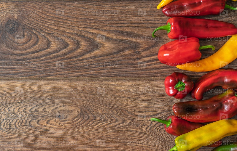 Болгарский перец желтого и красного цветов на дубовых досках