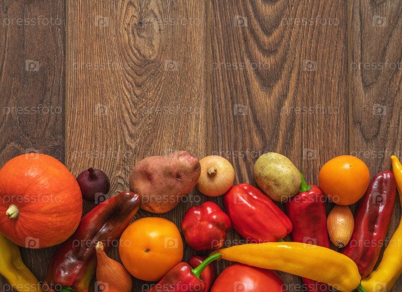 Свежие органические овощи желтых и красных цветов на дубовых досках