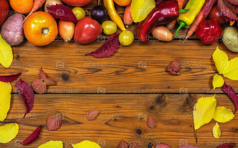 Рамка из свежих органических овощей. Осенние овощи на дубовой доске