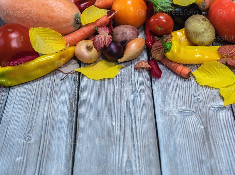 Рамка из свежих органических овощей. Осенние овощи на побеленной дубовой доске