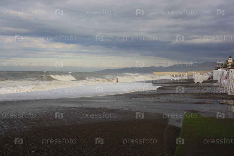 Шторм на Черном море на пляже Ривьера в городе Сочи
