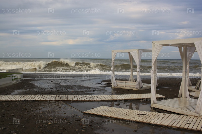 Шторм на Черном море на пляже Ривьера в городе Сочи