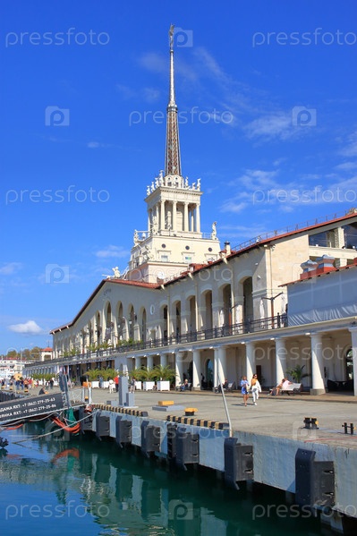 Вид на красивое здание морского порта города Сочи