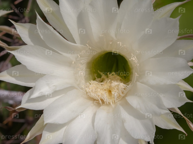 Макро-белый цветок кактуса. Крупный план цветущего белого цветка кактуса