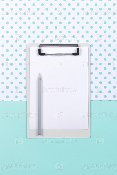 Макет с белой бумагой и серебряным карандашом на двухцветном фоне