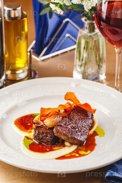 Медальоны из говяжьей вырезки с соусом и луком