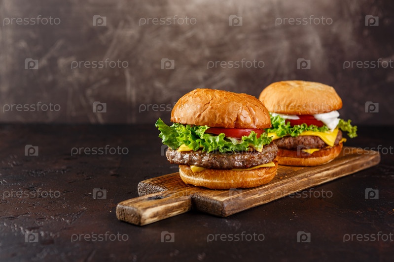 Крупный план домашнего вкусного гамбургера на деревянном столе