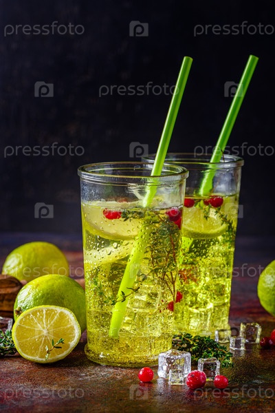 Лаймовый лимонад с тимьяном, клюквой и льдом