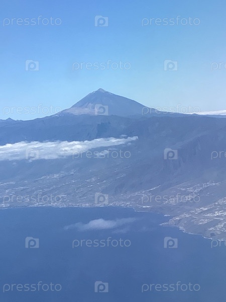 Величественный Тейде из окна самолета. У подножия облака