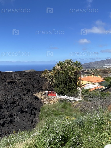 Это большой и мощный вулкан Кумбре Вьеха на острове Ла-Пальма. Последствия извержения